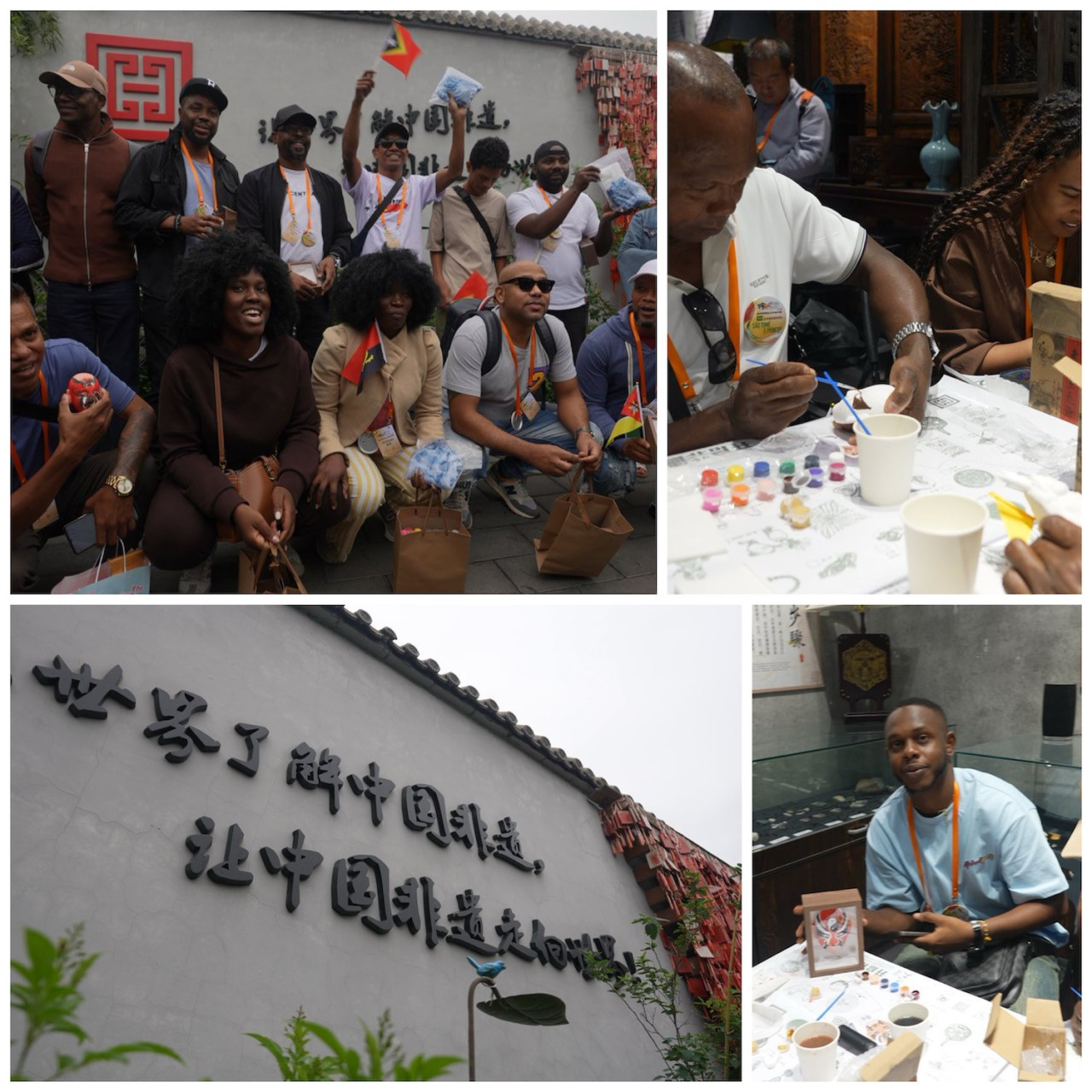接下來,葡語文藝團體來到北京文化氣息最濃厚的93號院博物館,這裡是非遺和民間藝術傳播與體驗的基地。他們親手繪製兔兒爺、京劇臉譜,並體驗紮染手工藝,切身感受這些傳統技藝的獨特魅力和深厚意義。
